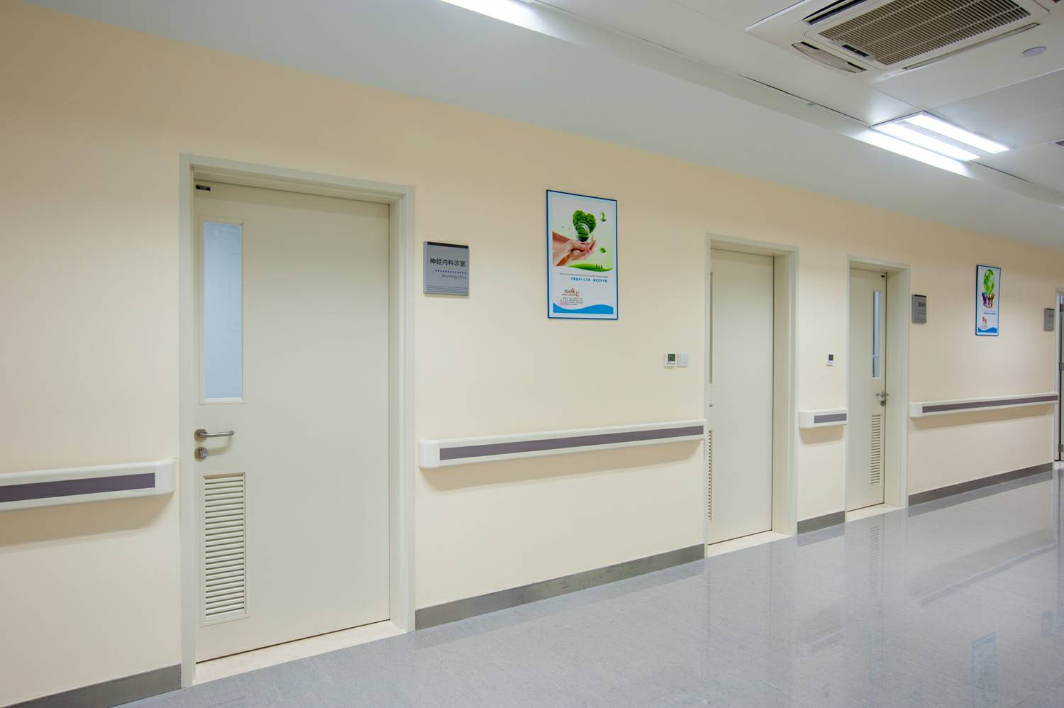 产品种类已覆盖医用钢质门、医用推拉门、室内门、防火门、钢质墙板、钢质空间隔断、金属吊顶等。从接待处到ICU,从化验室到手术室,从病房到行政办公,我们为医院空间环境设计研发多年的产品覆盖各类医院的特定需求..